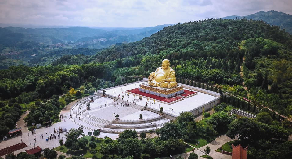- 特色:世界最大笑佛,高19.99米,取唐末布袋和尚形象,象征跨世紀(jì)和平統(tǒng)一。基座內(nèi)藏明代《破山禪師語錄》殘卷,2025年新增全息投影“佛光普照”奇觀。