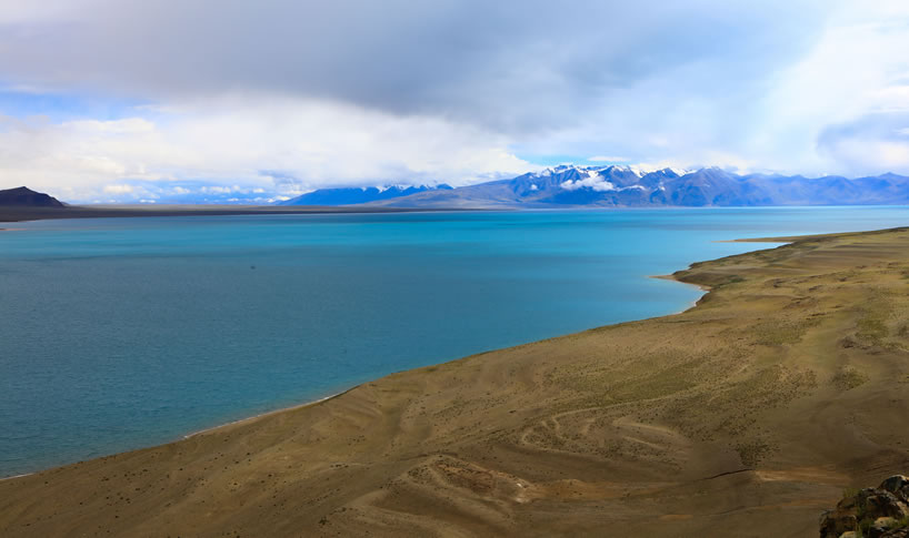 當(dāng)惹雍措,是西藏面積第四大湖,中國第二深的湖,是西藏最古老的雍仲本教徒崇拜的最大的圣湖。當(dāng)惹雍措為南北走向,形如鞋底的大湖泊,三面環(huán)山。唯南岸達(dá)爾果山東側(cè)有一缺口。達(dá)爾果山一列七峰,山體黝黑,頂覆白雪,形狀酷似7座整齊排列的金字塔。它和當(dāng)惹雍措一起被雍仲本教徒奉為神的圣地。湖邊的玉本寺是一座建于懸崖山洞的寺廟,據(jù)說為象雄雍仲本教最古老的寺廟之一。“達(dá)爾果”和“當(dāng)惹”都是古象雄語,意為“雪山”和“湖”,它們一個(gè)是神山,一個(gè)是圣湖, 公元五世紀(jì)以前,在世界屋脊的青藏高原,曾經(jīng)存在一個(gè)有自己的語言和文字,文明高度發(fā)達(dá)的古象雄王國。最輝煌的時(shí)候,象雄王國的疆域西起今阿里地區(qū)的崗仁波齊(上象雄),橫貫藏北的尼瑪、申扎一帶(中象雄),東昌都丁青一帶(下象雄),疆域極其遼闊,是青藏高原最早的文明中心。而這其中,中象雄的中心就位于達(dá)果雪山和當(dāng)惹雍措的附近。時(shí)日,人們?nèi)匀豢梢栽谶@里看到古象雄國王宮的遺址。