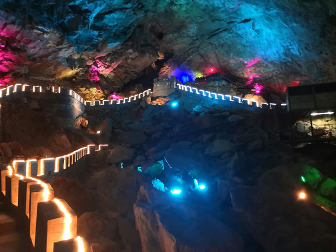 - 核心景觀:黃金溶洞(約2000米,鐘乳石千姿百態(tài),常年18℃清涼)、明代大理石長(zhǎng)城(野長(zhǎng)城段,山頂古炮臺(tái)遺址)。