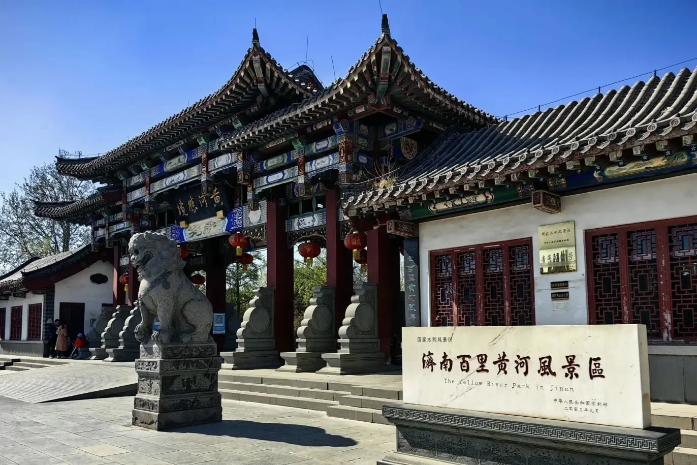 濟(jì)南百里黃河風(fēng)景區(qū)位于山東省濟(jì)南市天橋區(qū)濼口街道環(huán)城路166號(hào),占地面積990公頃,屬?lài)?guó)家AAA級(jí)旅游景區(qū)。景區(qū)全長(zhǎng)51.98公里,依托黃河標(biāo)準(zhǔn)化堤防工程而建,以懸河景觀、水利工程為特色,包含河道堤防、淤背區(qū)生態(tài)林及千畝銀杏園等生態(tài)景觀。2003年獲評(píng)國(guó)家水利風(fēng)景區(qū),2018年入選“中國(guó)黃河50景”,2023年列入《紅色基因水利風(fēng)景區(qū)名錄》。現(xiàn)存毛澤東視察黃河紀(jì)念地、濼口九烈士紀(jì)念碑及《鵲華秋色圖》描繪的鵲山、華山景觀。景區(qū)設(shè)有濟(jì)南黃河文化展覽館、憲法廣場(chǎng)等文化設(shè)施,每年舉辦黃河文化藝術(shù)節(jié)、沙雕展等活動(dòng)。綠化覆蓋率達(dá)97%,栽植白皮松、五角楓等30余種苗木,形成多層次生態(tài)防護(hù)屏障。