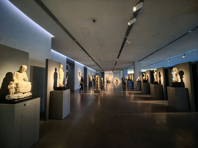 - 核心特色:融合佛教造像、玉器、陶俑、青花瓷等多品類文物,以“料、工、形、紋”古器物學(xué)研究為脈絡(luò),建筑本身即藝術(shù)——玻璃帷幕在夜間化身深邃藍盒,旋梯貫穿全館,光影隨樓層遞增由暗轉(zhuǎn)明,象征對光明與希望的追逐。