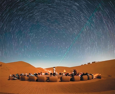 據(jù)介紹,今年暑期夜游活動集中展現(xiàn)了沙坡頭旅游的創(chuàng)新探索。在文旅融合上,“音樂+旅游”模式持續(xù)創(chuàng)新,“青春漠漠搭”系列音樂節(jié)、四熹丸子演唱會等成為新看點,形成獨特的“沙漠音樂之旅”主題線路,特別受年輕游客喜愛。開發(fā)“浪漫+旅游”融合產(chǎn)品,星星酒店借助沙漠優(yōu)質(zhì)觀星環(huán)境,為游客營造沉浸式觀星的浪漫。酒店的觀星活動分為室內(nèi)星空講座和室外裸眼觀星。此外,酒店還建有專業(yè)的陣列式天文觀測站和圓頂天文臺。英國游客亞當(dāng)說:“這里是最像火星的浪漫之地。”
