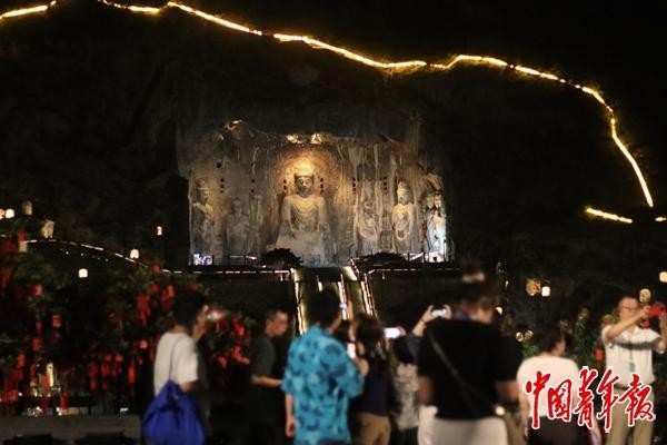 龍門(mén)石窟研究院黨委書(shū)記余杰說(shuō),龍門(mén)石窟正在構(gòu)建5G數(shù)字化綜合管理平臺(tái),實(shí)現(xiàn)管理、調(diào)度、旅游服務(wù)、客流監(jiān)測(cè)、智慧導(dǎo)覽“一張皮”管控。在觀眾需求方面,通過(guò)遮陽(yáng)棚、熱水供應(yīng)等細(xì)節(jié)入手,提升其滿(mǎn)意度和體驗(yàn)感。同時(shí),龍門(mén)石窟連續(xù)多年推出了“夜游龍門(mén)”活動(dòng),人們可以打卡月色下的石窟。