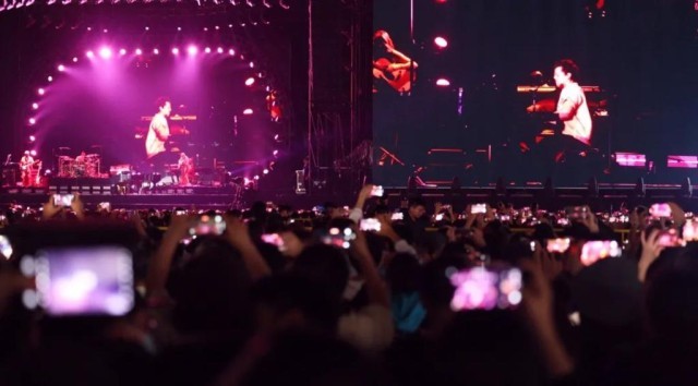 圖為查理·普斯世界巡回演唱會?谡粳F(xiàn)場。(?谑新糜魏臀幕瘡V電體育局供圖)