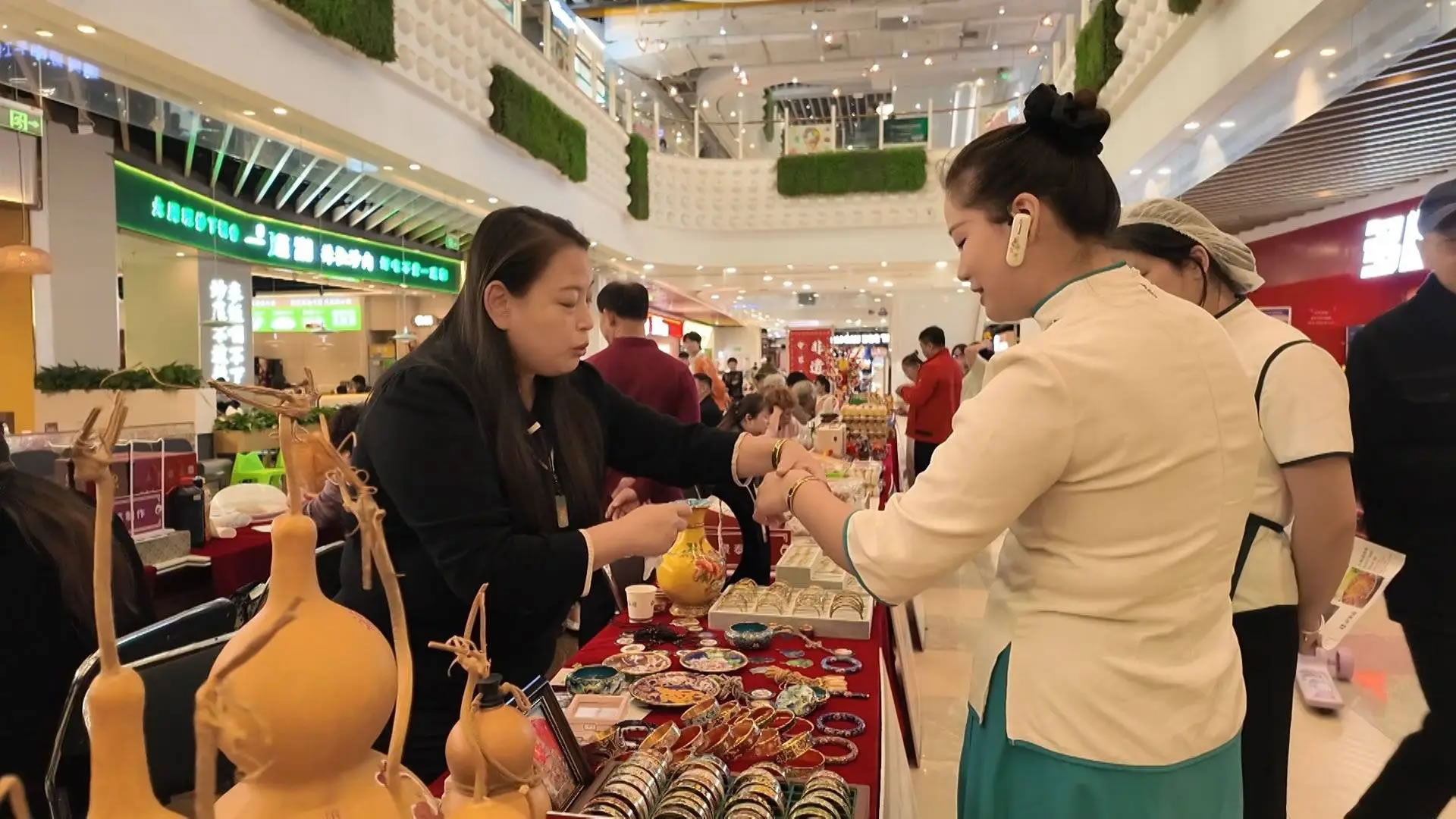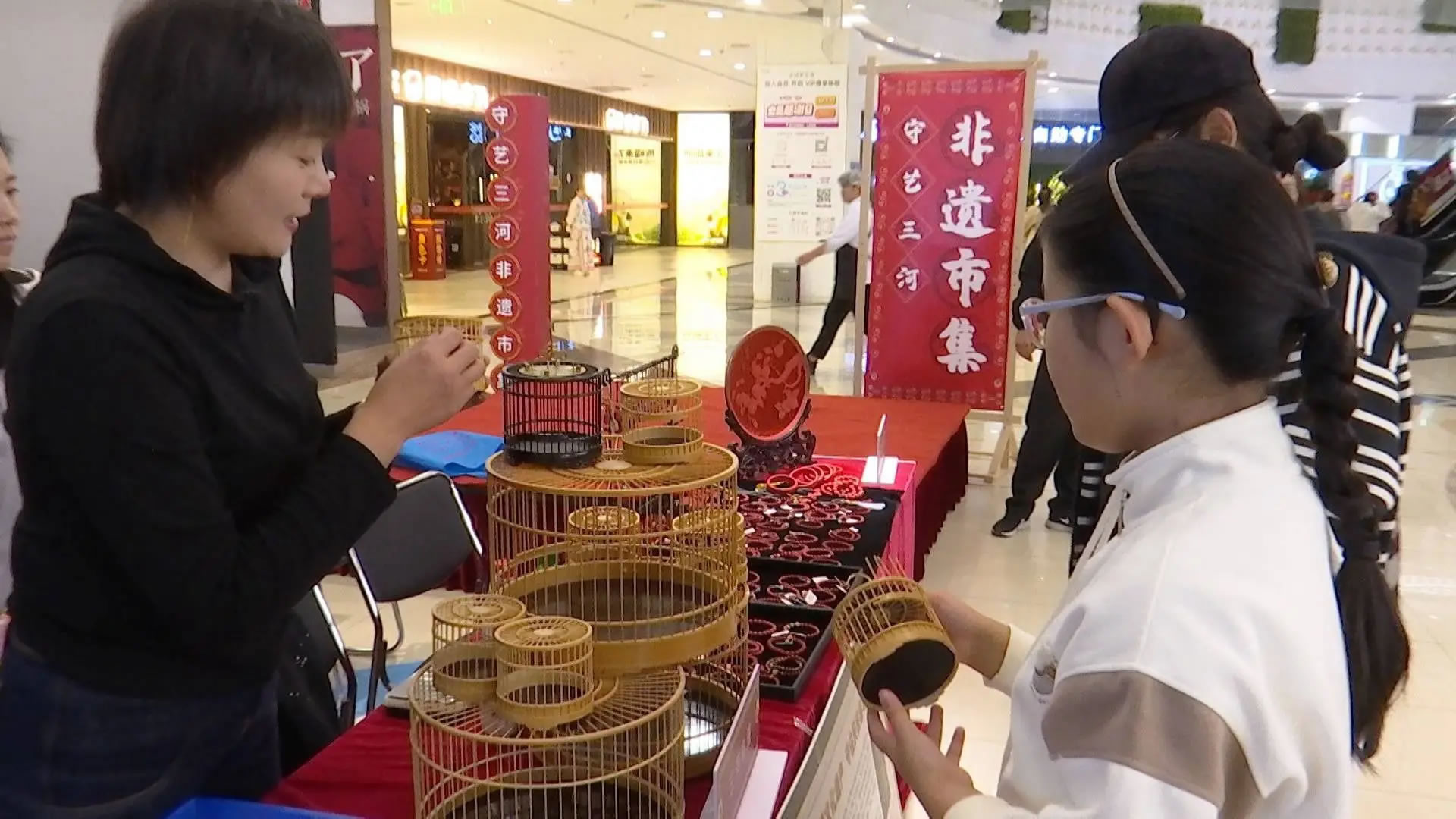 在三河喬鳥(niǎo)籠的攤位前,非遺傳承人正耐心地為一位小朋友講解鳥(niǎo)籠的制作奧秘,從選料到打磨,再到微小部件的精密組裝,精湛的技藝讓充滿(mǎn)好奇的孩子驚嘆不已。與此同時(shí),在商場(chǎng)一樓的“守藝三河”非遺精品展示區(qū),包括鼻煙壺、三河喬鳥(niǎo)籠在內(nèi)的多項(xiàng)非遺產(chǎn)品,吸引著往來(lái)顧客的目光。