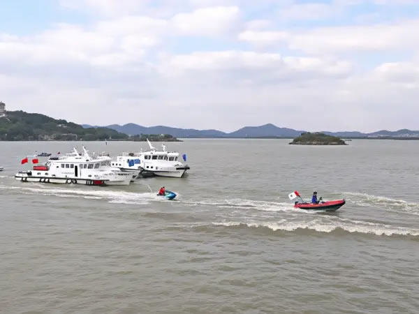 無(wú)錫市交通運(yùn)輸綜合行政執(zhí)法支隊(duì)、蘇州市交通運(yùn)輸綜合行政執(zhí)法支隊(duì)、常州市交通運(yùn)輸綜合行政執(zhí)法支隊(duì)、湖州市交通運(yùn)輸綜合行政執(zhí)法支隊(duì)、蘇州市交通運(yùn)輸應(yīng)急指揮中心、無(wú)錫市公安局水上分局、無(wú)錫太湖黿頭渚旅游集團(tuán)有限公司、無(wú)錫市藍(lán)天救援隊(duì)等兩省四市的交通運(yùn)輸部門(mén)、文旅企業(yè)、社會(huì)救援力量參加演練。