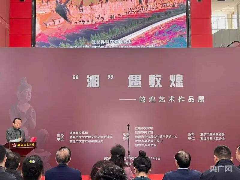 此次展覽,不僅是兩地踐行文化自信、推動(dòng)文化交流的重要舉措,更在于通過展覽,讓敦煌文化為瀟湘大地增添一抹濃郁的藝術(shù)色彩,也讓荊湘文化為戈壁綠洲帶來靈秀的人文氣息,真正意義上實(shí)現(xiàn)文化資源的共享互鑒,為兩地文化發(fā)展注入新動(dòng)能。