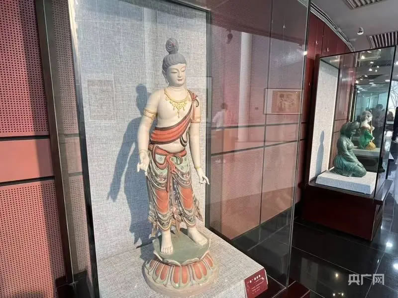 本次展覽精選30件敦煌彩塑、70件敦煌石粉彩繪作品(央廣網(wǎng)發(fā) 蔣好 攝)