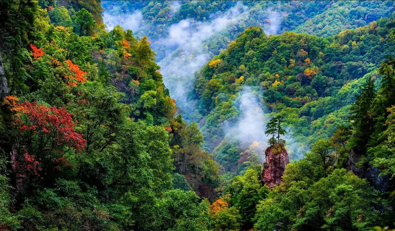 山河入秋,大地鎏金。走進(jìn)國家級風(fēng)景名勝區(qū)甘肅華亭關(guān)山蓮花臺,仿佛走進(jìn)了五顏六色的童話世界——層林盡染,五彩繽紛,秋意在這里揮灑得淋漓盡致?諝庵懈又嗤恋臏貪櫯c草木的清香,山間那些不知名的野花依然開得爛漫,如散落的星辰點綴林間。