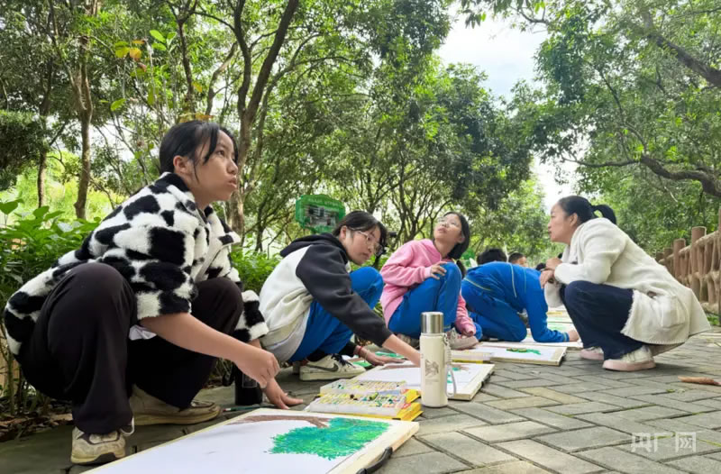 學(xué)生在肇慶龍溪棧道進(jìn)行創(chuàng)作寫(xiě)生(央廣網(wǎng)記者 官文清 攝)